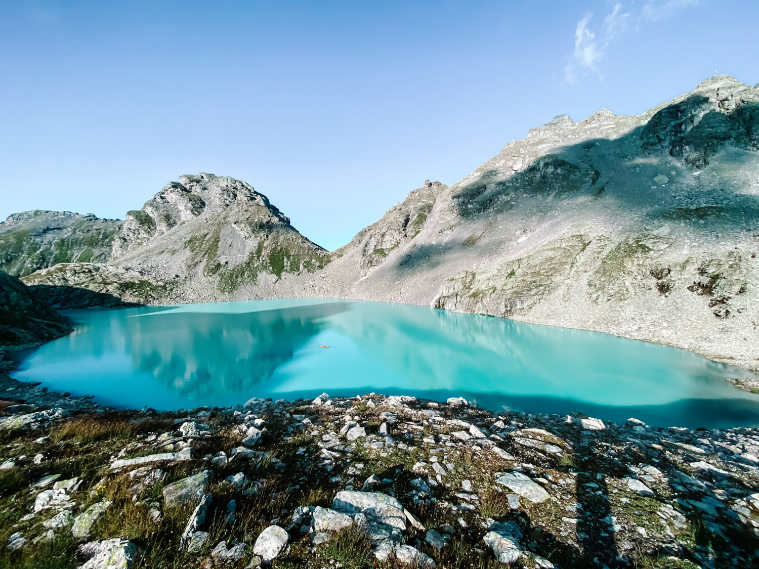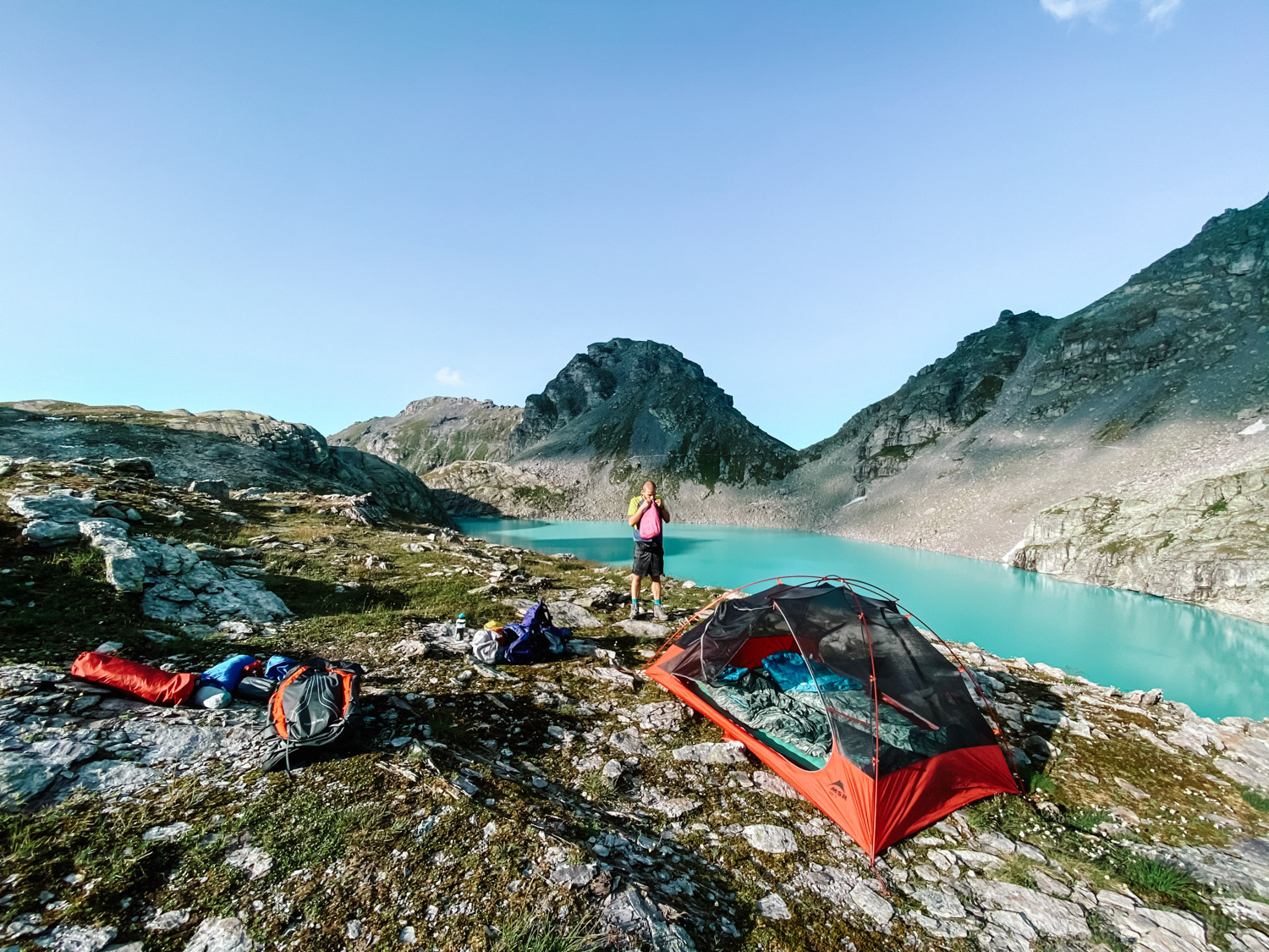 The hike can be completed in a day and takes around 4-5 hours (breaks included), with a total length of 10 km and an altitude gain/loss of 750/1.100m. However, we decided to wild camp near one of the lakes and enjoy for two days the beautiful lakes situated well above 2.000m. We pitched our tent at Wildsee, which is a lake situated at 2.450m above sea level. Another good option is to set up tent near Schottensee.